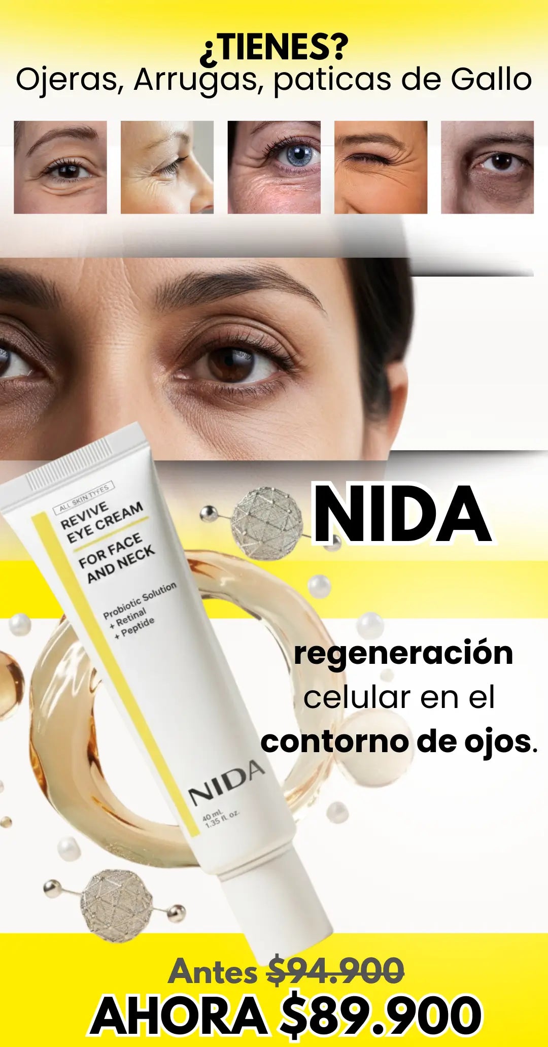 Totalmente. La combinación de Niacinamida y Péptidos mejora la microcirculación y reduce la hiperpigmentación, iluminando la mirada y disminuyendo el tono violáceo de las ojeras.